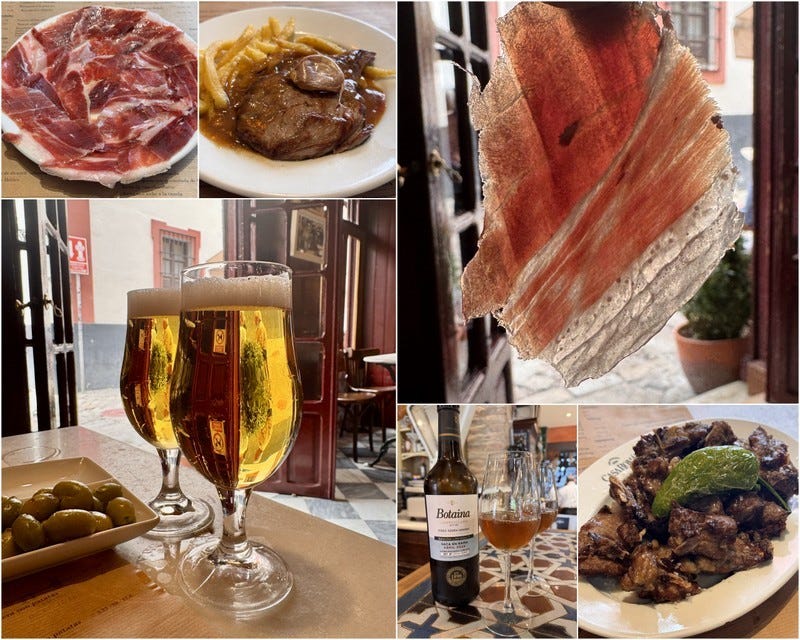 As I had to get deep into the Cathedral zone and my old neighbourhood Barrio Santa Cruz to catch the mantilla ladies out in force we ended up stopping in at Casa Román on the off chance they had a free table... and yes they did. Half an hour later the place was pretty much mobbed, so we got the timing just right and it was nice to have a table next to the open door.