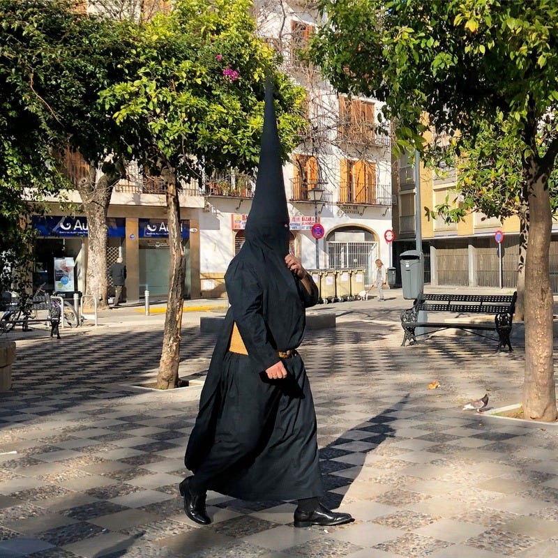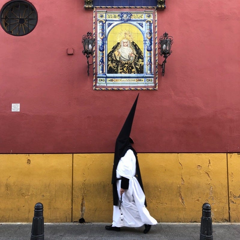 And the silence. The profound silence. Maybe you're in Plaza del Salvador, and everybody is chatting happy, smoking and drinking, and arrives the image of their Christ. Lights off, absolute silence. Absolute. You can only listen the feet of costaleros heading to the church.
